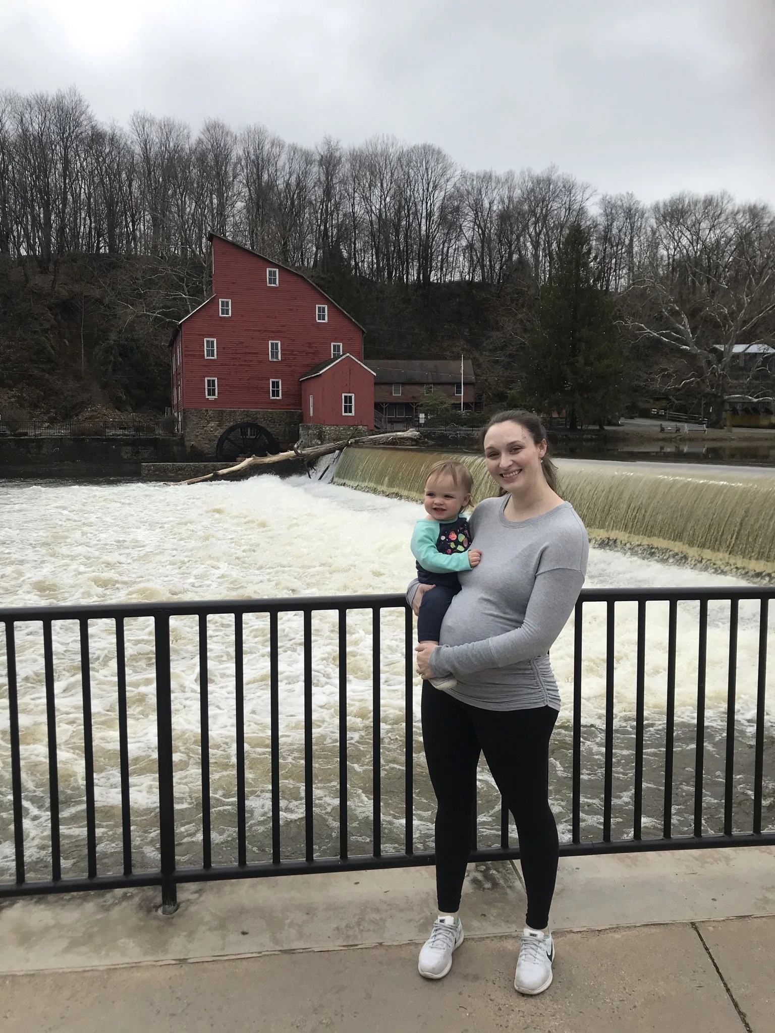 The story of my second daughter really starts way back at my six-week postpartum midwife appointment after my first pregnancy. My husband and I knew we wanted to have our children relatively close together, so I made sure to ask how long we had to wait in order to safely conceive again. While 18 months would’ve been ideal, she let me know that 12 months would still be ok if that’s what I wanted. Fast forward 6 months to our daughter sleeping well at night, moving out of our room, and my baby fever returning. We cast the caution to the wind thinking it would take us many months to conceive just like the last time. Spoiler alert: it didn’t take many months. I was 7 months postpartum and about to take on another pregnancy followed by raising two children under two years old. We were thrilled, but also apprehensive. Turns out my body just really doesn’t like being pregnant and the first miserable experience wasn’t a fluke. Despite extensive chiropractic work, I was exhausted, sick, in pain, and trudging through life with a rambunctious one year old for my entire pregnancy. Here’s a photo of me about 8 months pregnant – a photo I only asked for because I realized I didn’t have any photos of my belly this time. The proof of mom photos were also few and far between because while she was at the park with dad, I was laid up on the couch most days. In this instance, thank goodness for pandemics and shutdowns that allowed my husband to work from home. I wouldn’t have made it through otherwise.