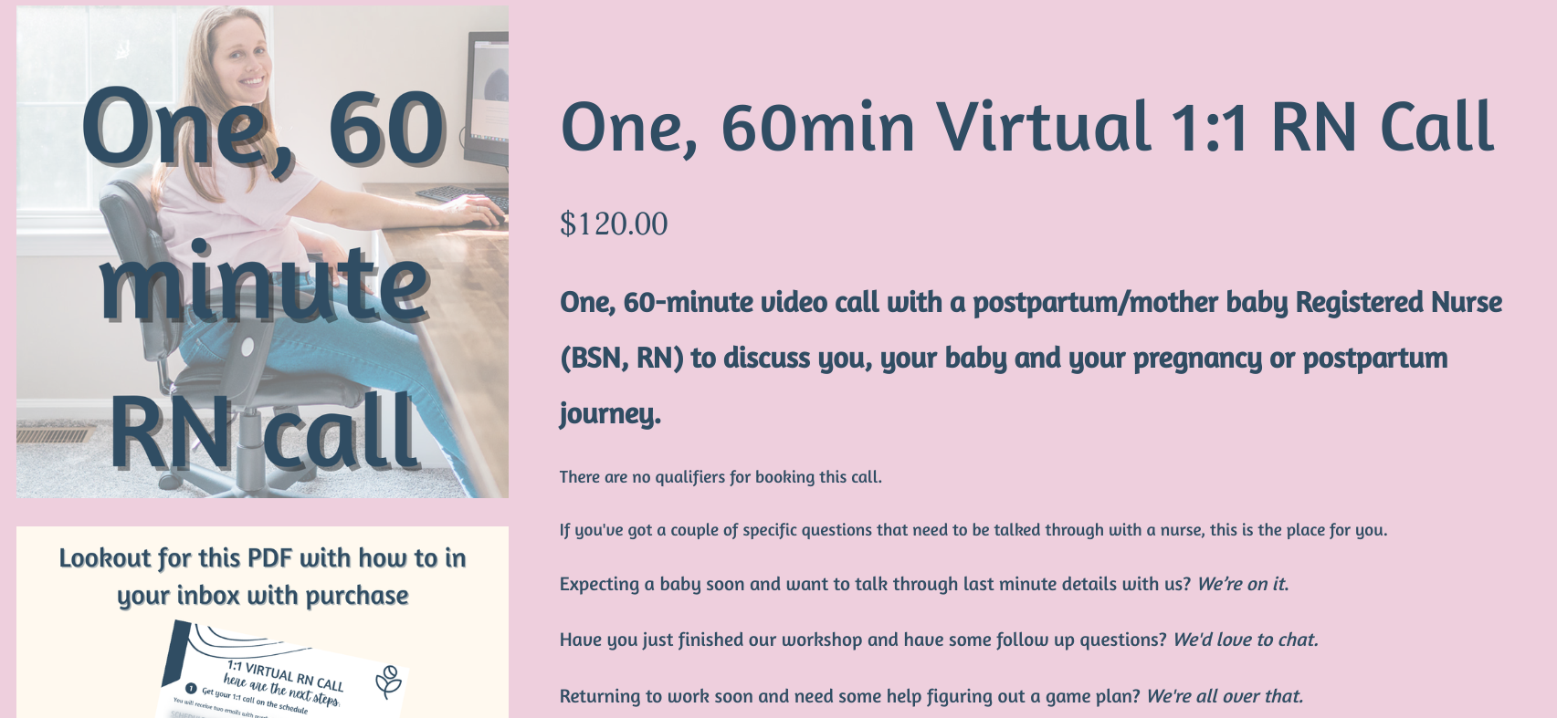if you purchased this, you can book another 1:1 call right here, right now, because 30 + 30 = 60, pregnant math 😅 book it! if you are waiting on your 30 minute 1:1 call, make sure you’re following us on insta for another way to connect and see our daily dose of encouragement